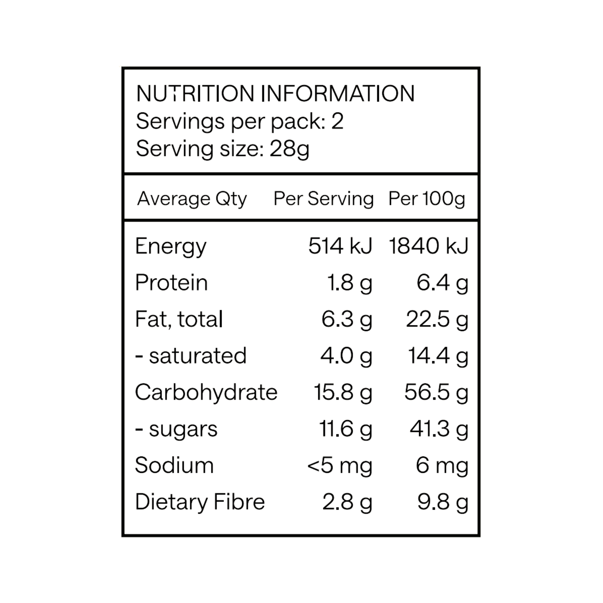 Medjool Dates*, Cacao Paste*, Dehydrated Dates*, Cacao Butter, Cacao Nibs, Tasman Sea Salt. May contain traces of tree nuts, peanuts, sesame, date pits. *Organic ingredient